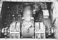 Трансмиссия танка Чи-Ну, в нижней части изображения видны два бортовых фрикциона