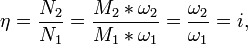 Также можно утверждать, что коэффициент трансформации равен отношению частоты вращения ведомого вала к частоте вращения ведущего вала.