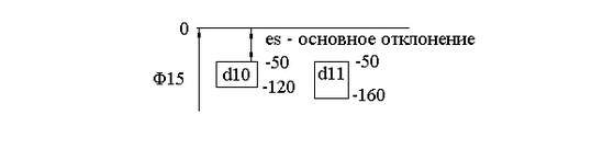 Пример. Определить нижнее отклонение ei вала Ф15d11, если допуск IT11 равен 110 мкм.