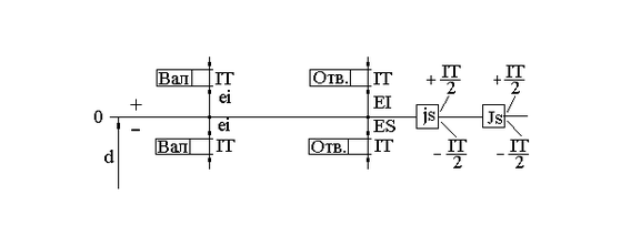 Основное отклонение отверстия равно по числовому значению основному отклонению вала с тем же обозначением (той же буквой), но с противоположным знаком.