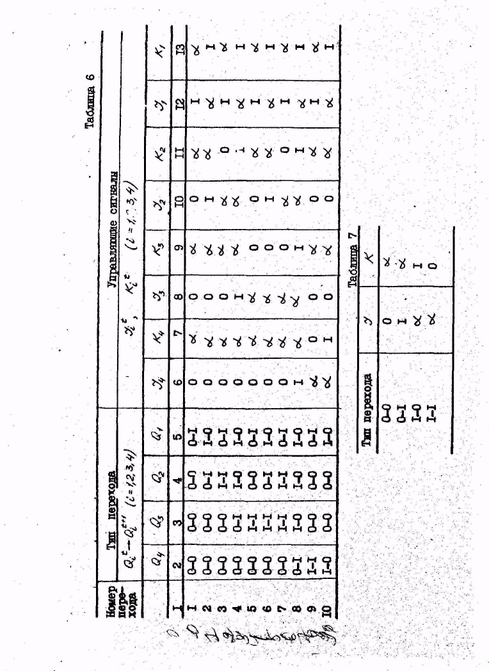 воспользуемся матрицей переходов JK-триггерп(табл.7). В каждой строке этой матрицы указаны значения сигналов на входах J и K обеспечивающие тот или иной переход триггера. При этом буквой