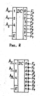 Такой дешифратор называется дешифратором с инверсными выходами. Его условное обозначение приведено на рис. 3.