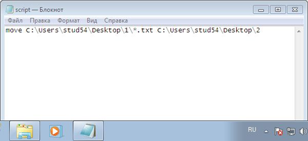 5: На рабочем столе 2 папки. В одной из них лежат 2 текстовых файла. Нужно, при входе в ОС создать сценарий, чтобы все файлы с расширением .txt переместились в другую папку.