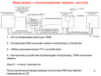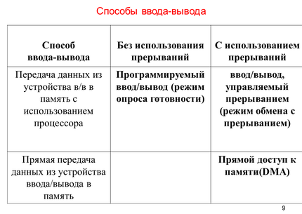 Способы ввода-вывода. Ввод вывод без использования и с использований прерываний. Прямой доступ к памяти.