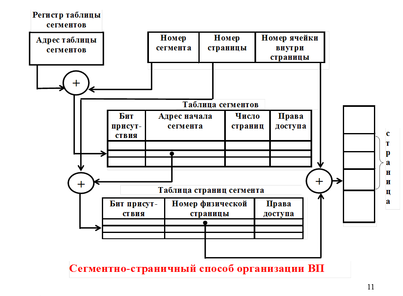 В настоящее время используется сегментно-страничная организация памяти. В ней большие сегменты делятся на небольшие страницы.