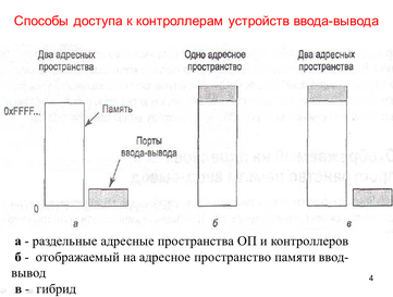 отображаемый на адресное пространство памяти ввод-вывод - регистры отображаются на адресное пространство памяти.