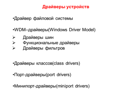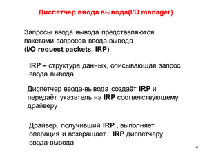 Обработка запросов ввода-вывода в ОС Windows. Диспетчер ввода-вывода. Драйверы устройств.