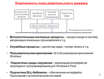 Архитектура ОС Windows. Компоненты пользовательского режима и режима ядра.