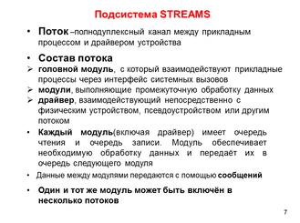 Потоковая подсистема ввода-вывода STREAMS ОС Unix.
