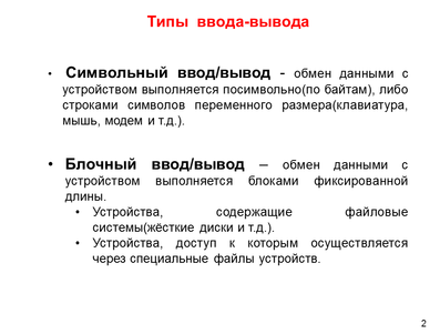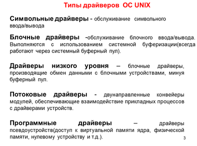 Типы ввода-вывода ОС Unix. Типы драйверов.