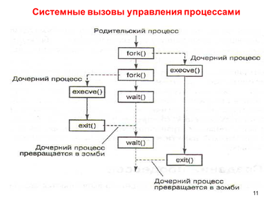 Системные вызовы управления процессами в Unix. Порождение процессов и синхронизация.