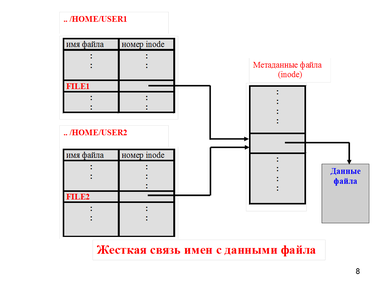Жесткие ссылки чем-то похожи на библиотечную систему карточек – когда для каждой книги есть свой уникальный идентификатор, и зная его – мы можем попросить библиотекаря дать нам эту книгу. При чем названия разных книг могут совпадать, но идентификаторы – никогда (это важный момент, обратите внимание).