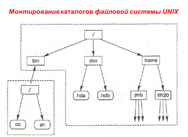 Логическая организация файловых систем Unix. Монтирование файловых систем. Типы файлов. Жесткие и символические ссылки.