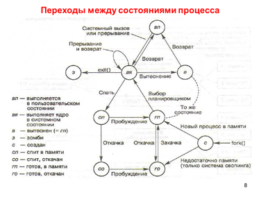 В операционной системе UNIX традиционно поддерживается классическая схема мультипрограммирования. Система предоставляет возможность параллельного (или псевдопараллельного в случае наличия только одного аппаратного процессора) выполнения нескольких пользовательских программ. Каждому такому выполнению соответствует процесс операционной системы.