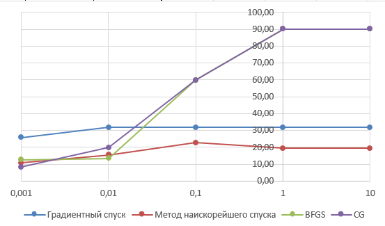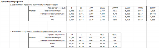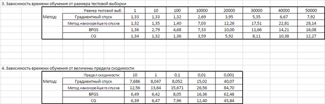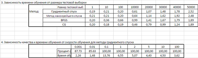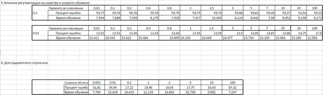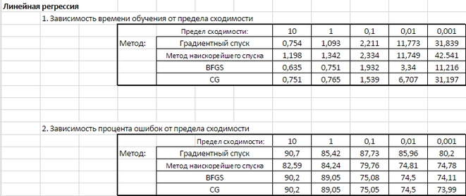 В процессе выполнения данной лабораторной работы были получены результаты, представленные выше. На них повлияло множество факторов настройки системы: предел сходимости, скорость обучения, размер тестовой выборки, и один из самых важных – метод оптимизации. Он является одним из самых значимых параметров по той причине, так как именно выбор метода оптимизации наибольшим образом влияет на получаемые результаты.