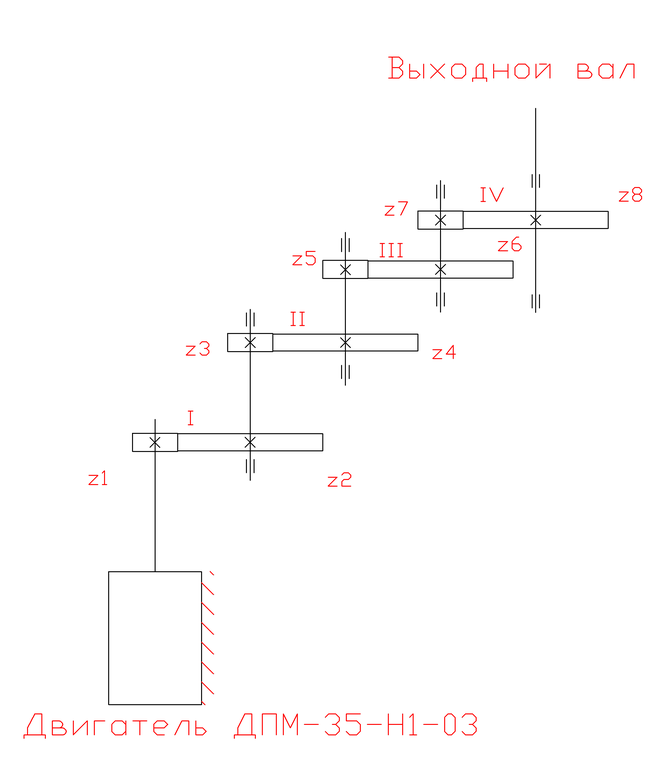 Для того чтобы проверить правильность выбора двигателя, необходимо привести момент на выходном валу к валу двигателя по формуле (4) для каждого вала, начиная от выходного, и сравнить пусковой момент двигателя с приведённым моментом.