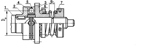 живаются на диаметре D0 и равномерно распределяются по окружности сепаратором 5. Для повышения точности момента срабатывания применён упорный шариковый подшипник 6. Зазор S служит для регулировки момента срабатывания при помощи гайки 7.