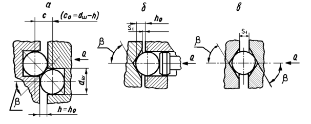 c = 8,5о, при бронзовой обойме c= 6о (шарики стальные),