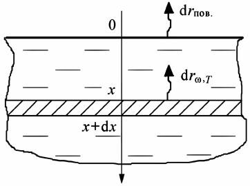 . При этом по закону Бугера поток энергии излучения уменьшается экспоненциально и при выходе на поверхность