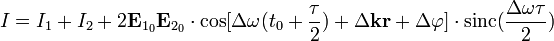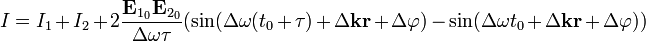 Взятие интеграла по времени и применение формулы разности синусов даёт следующие выражения для распределения интенсивности: