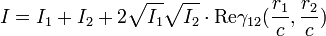 от времени, интерференционная картина изменяется во времени, что приводит к ухудшению контраста либо к исчезновению полос вовсе. При этом в рассмотрении задачи интерференции, вообще говоря и не монохроматическгого (полихроматического) излучения, вводят понятие комплексной степени когерентности