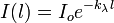 где I0 — интенсивность входящего пучка, l — толщина слоя вещества, через которое проходит свет, kλ — коэффициент поглощения (не путать с безразмерным показателем поглощения κ, который связан с kλ формулой kλ = 4πκ / λ, где λ - длина волны).