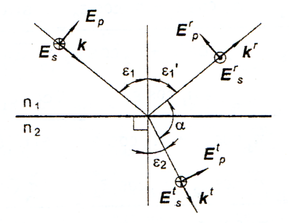 плоскостью, проходящей через падающий луч и нормаль к границе раздела в точке падения, которая называется плоскостью падения. Падающая, преломленная и отраженная волны распространяются в направлении волновых векторов