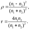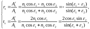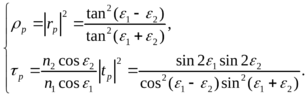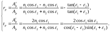 характеризуют изменение амплитуды и фазы соответственно s- и p-составляющей электрического вектора отраженной волны по сравнению с электрическим вектором падающей. Амплитудные коэффициенты пропускания