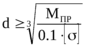 Если не находится в допускаемом диапазоне, то необходимо выбрать другие материалы с другими [σи] и [p].
