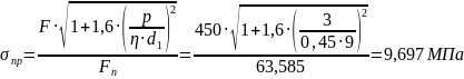 Приведенное напряжение винта рассчитаем по формуле (),([], стр.).