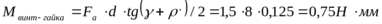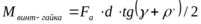 где f – коэффициент трения скольжения между материалами винта и гайки, α –угол профиля резьбы, α=600