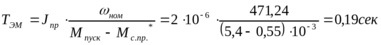 Расчет заключается в определении времени разгона и выбега. Время разгона характеризует готовность ЭМП к работе, а время выбега – время до полной остановки двигателя при сжатии напряжения.