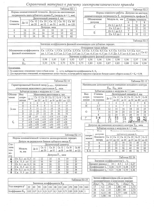 Для 6-ой степени точности допуск на накопленную погрешность шага зубчатого колеса (шестерни) в [мкм] (табл. П2.1):