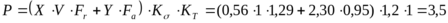 V – коэффициент вращения. Для внутреннего кольца, вращающегося по отношению к нагрузке V = 1.