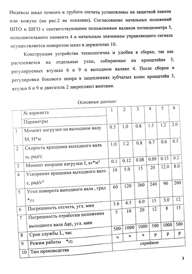 1.Оглавление. 2. Задание на курсовой проект( на бланке). 3. Назначение устройства. 4. Разработка технического предложения анализ ТЗ и кинематической схемы. Уточнение ТЗ. Выбор и обоснование элементной базы привода и отсчётного устройства. 5. Проектировочный расчёт ЭМП: выбор двигателя. Расчет кинематических цепей: двигатель – нагрузка, ДОС и ОУ. Определение типов, числа и параметров элементарных передач и ОУ. Расчет моментов и усилий в кинематических цепях. Расчет на прочность элементов ЭМП. Выбор материалов и допускаемых напряжений. Определение размеров элементов передач, выбор типа и материала корпуса. Проектировочный расчет валов. Выбор и обоснование выбора опор. Точность элементов конструкции. Посадки. Эскизная проработка конструкции с учетом требований надёжности, унификации и т.д. Разработка схемы деления УУ ОЭП на составные части. Выбор покрытий. Проверочные расчеты спроектированного привода. Проверка правильности выбора двигателя. Определение уточненных моментов и усилий. Проверочные расчеты валов и опор элементов передач на прочность. Определение времени разгона и выбега ЭМП. Расчет на точность кинематических цепей, размерной цепи ( по указанию преподавателя ). Выводы и заключение. Список литературы.