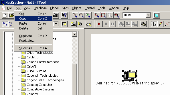 Для построения сегмента Ethernet 10Base-T вам по условию задачи необходимо 5 рабочих станций. Первую вы уже создали. Остальные 4 создадим с помощью копирования. Выделив имеющуюся рабочую станцию, выберите в меню Edit/Copy.