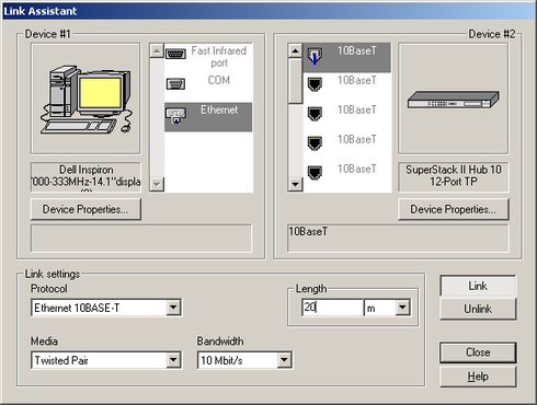 В раскрывшемся окне Link Assistant нажмите кнопку Link и установите длину между устройствами. Остальные параметры оставьте без изменений. Закройте окно клавишей Close.