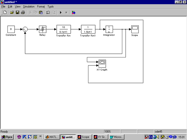 Промоделируем эту систему в Simulink. Для этого надо ввести команду в рабочую строку