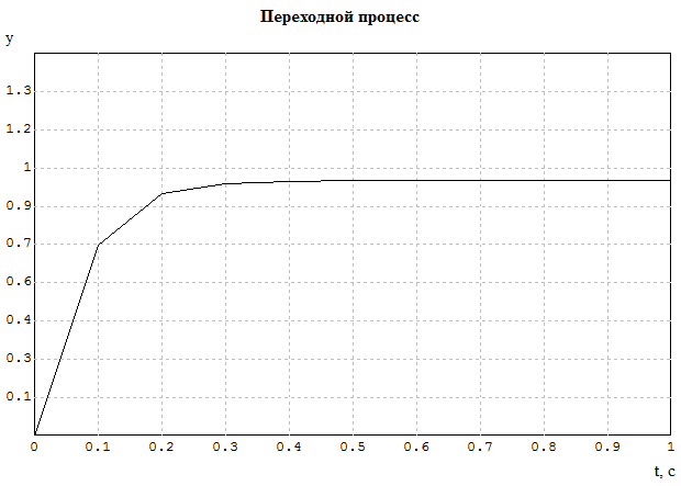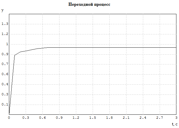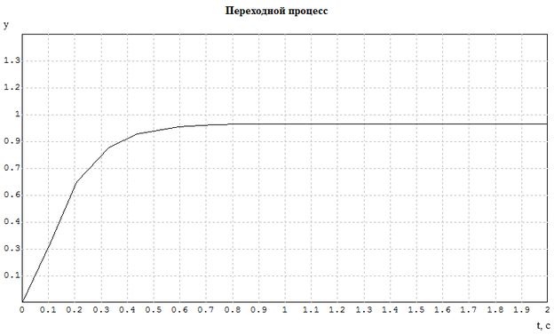 ) в модель системы, а так же примем равную 0 интегральную составляющую. При моделировании получим следующий переходной процесс: