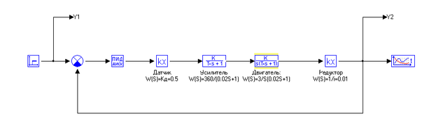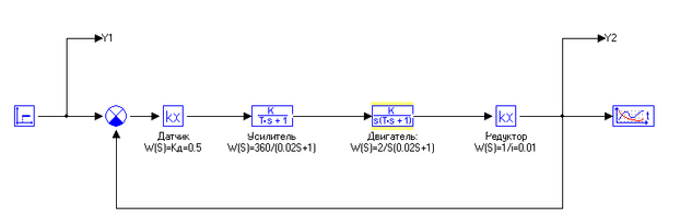 Построим ЛАЧХ для исходной САР. Для этого необходимо построить следующую схему: