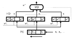где m-число НЭ, уже задействованных к моменту t. Таким образом НЭ, выделяются динамически. При отсутствии сигнала yi в уже обученных НЭ текущая n-грамма в окне РС является новой для сети и запоминается - в одном из свободных НЭ значение адреса принимает значение n-граммы: w^m+1=a^t. При наличии сигнала в некотором НЭ yi0 текущая n-грамма считается уже представленной в этом НЭ (отличается не более, чем на r от его адреса) и запоминания не происходит.