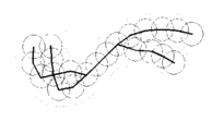 Алгоритм повторяется некоторое число итераций, постепенно сдвигая оси трубок к максимумам распределения точек a^t в своей r-окрестности - центрам притяжения.
