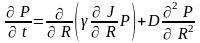 Под действием поля частицы - вершины графа - будут стремиться расположиться по подграфам так, чтобы доставить минимум функционалу J. Однако расчет координат по детерминистическому уравнению (155) может привести к попаданию частиц в один из локальных минимумов, из которого они не в состоянии выбраться. Поэтому, в систему вводятся дополнительные стохастические силы, приводящие к тепловым флуктуациям частиц, которые помогают им выбраться из локальных минимумов. Тогда процесс поиска оптимального расположения частиц в подграфах будем моделировать процессом случайного блуждания в потенциальном силовом поле J(R). Пусть вероятность P(R, t) обнаружить частицу в момент t в точке с координатами R подчиняется уравнению Фоккера-Планка: