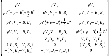 Рассмотрим систему трехмерных уравнений магнитной гидродинамики, описывающих течение жидкости, способной проводить электрический ток [90]. Система имеет следующий вид