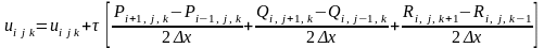- вектор решения, тензор системы F, определяющий плотности потоков, имеет вид