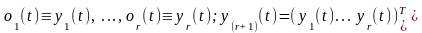 Выходные координаты в силу определения должны были бы быть представлены реальными, доступными потребителю процессами, что обычно и удается обеспечить с помощью измерителя. Правда, часто измерения (в силу специфики работы измерителя) представляют некоторую функцию h от выхода и от возмущений (в силу влияния среды на процесс измерения): h(o(t), w(t)), детальнее -