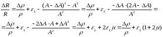 При описании выражения (4) использованы типичные для технической литературы обозначения для значений относительной продольной (Longitudinal ) и относительной поперечной (Traverse) деформации. В самом выражении (4) приведен связывающий эти деформации коэффициент Пуассона. Однако, при удлинении тела (положительное приращение длины) его сечение уменьшается (отрицательное приращение площади). Поэтому встает вопрос о знаке (плюс – минус) в выражении (4). Учтите это обстоятельство при выводе выражения (5).