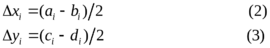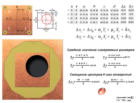 Измеренные значения ai, bi, ci, di (рис. 12, б) позволяют оценить смещения центров i-й пары отверстий по осям: