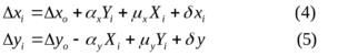 К их числу относятся общие для всех зон смещения xo и yo, которые можно представить как результат рассовмещения центров шаблона и платы из-за ошибок оператора или погрешностей системы совмещения.