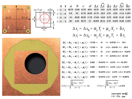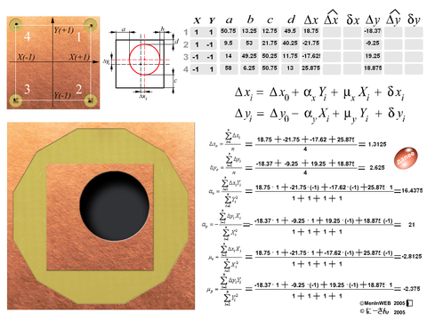Из поля формул исчезнут формулы для определения среднего значения размера и смещения центров i-го отверстия по двум осям. Вместо них появятся формулы для расчета таких составляющих погрешности рассовмещения как: